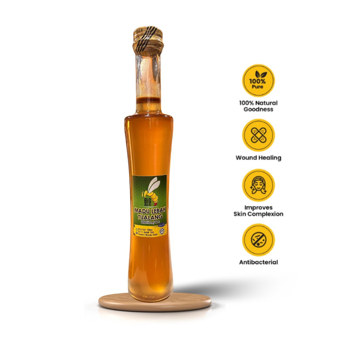 This honey is produced by Apis Dorsata bees that build their hives on the Tualang tree, hence it is known as Tualang Honey.